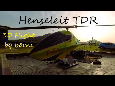Hier ein Flug mit meinem guten alten TDR. Der Heli kam zur mir von einem Clubkollegen der kaum noch Heli fliegt und ist nun auch schon seit vielen Jahren in meinem Besitz. Wurde damals wohl gleich als der TDR rauskam aufgebaut und auch nix dran geändert (Kontronik Motor und Regler, die alten Futata Servos sowie das Uralt Vstabi mit externem Sensor). Fliegt aber immer noch echt klasse und kommt regelmäßig mit auf den Platz