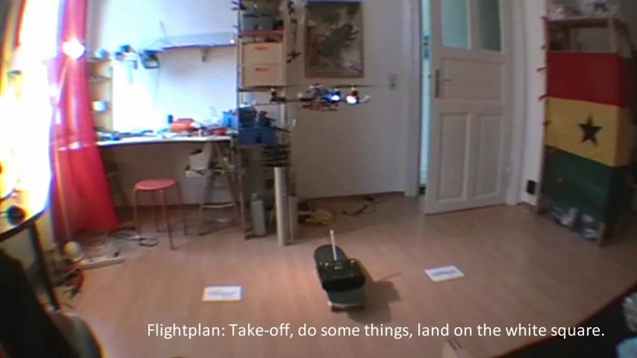 Das Projekt schreitet weiter fleissig voran, mittlerweile fliegt der Copter vollständig autonom in meiner Wohnung: