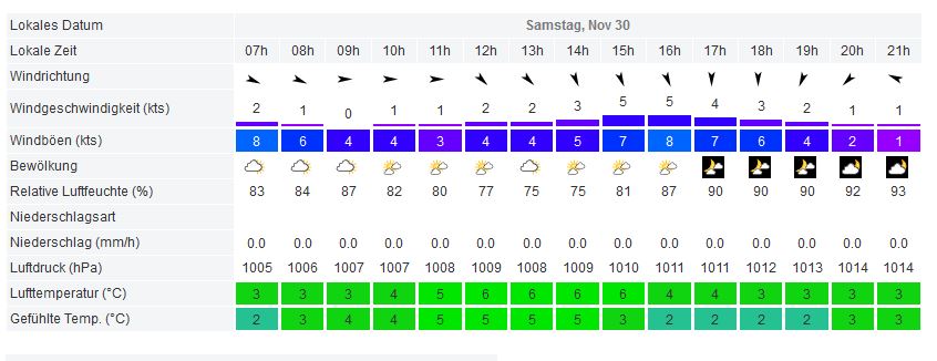 Wenn das Wetter am Samstag tatsächlich so wird wäre dies genial, kein Wind und geschmeidige 5-6°: