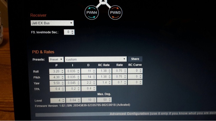 Dadurch bei 3s vielleicht irgendwo zu wenig Drehzahl ist und man was in den General Settings im gui