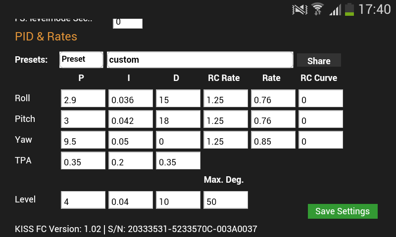 Jetzt im Urlaub fliege ich vermehrt im Wald, habe dementsprechend die Rates angepasst. Was mir persönlich gefällt is, dass er sich besser händeln lässt mit flips und Rollen, nicht zu schnell nicht zu langsam. Das taugt mir sehr, weiterhin habe ich bounce back vollständig weg bekommen, prop wash und das einsacken nach loops. Oszillieren tut nix.
