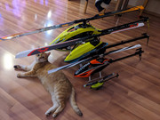 Täuscht nur. Ich finde, dass der Unterschied zwischen Nimbus 550 und Raw 700 größer ist als der Unterschied zwischen Nimbus 550 und Protos 380. Der Raw 700 ist einfach ein riesen Teil. Im Vergleich zum Trex 550x ist der Nimbus noch mal eine ganze Ecke kleiner. Das Chassis vom Trex 550x ist fast so hoch wie das vom Raw 700. Man muss aber auch sagen, dass der Trex 550x mit Align 550er Blättern und 6s 5200 Lipo um die 3,5kg wog und der Nimbus 550 mit den Azure 560er Blättern und dem gleichen 6s 5200 Lipo 3,03kg. Das ist ein riesiger Unterschied. Deswegen habe ich mir auch den Nimbus geholt, weils in der Theorie vom Flugverhalten her einen großen Unterschied machen sollte.