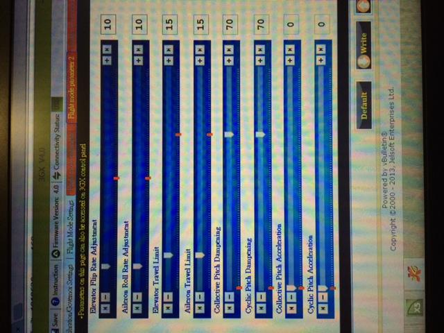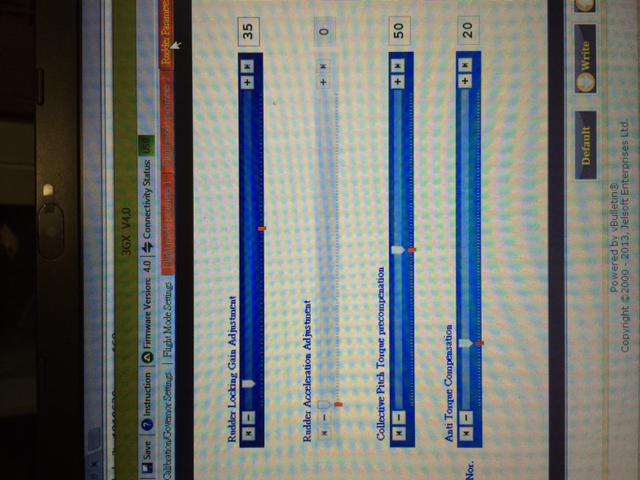 Danach habe ich den Pc angeschlossen und haben Gyro HH wert von 70-50 % verrigert und es war besser jedoch hat er beim Auslaufen sich kurz geschüttelt ich denke mal war aufgrund unebenboden zurück zu führen und an den Blatt äanden war das Gelcoat weg sowie 2 Zßhne ma getribe eines Servos.
