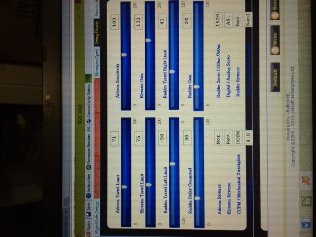 Ist alles vorhanden jedoch ist in der Anleitung nichts beschrieben bzgl. des kreisel das einzigste ist bei Futabe bitte 35-50% und bei Spectrum .... das habe ich so gemacht ohne das ganze an den PC zu hängen.