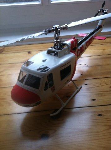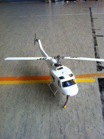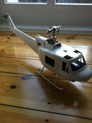 Ich wollte ihm einfach eine schönere Hülle schenken und bin schnell an einer Huey hängen geblieben. Auf meiner Suche nach einem schönen Rumpf bin ich auf Heliartist aufmerksam geworden und habe mir einen unlackierten Rumpf gegönnt. Die Werkslackierungen haben mir nicht gut gefallen und außerdem wollte ich bei dieser kleinen Größe nicht auf die Oliv-Vietnam-Version zurückgreifen. Denn durch das Einheitgrün sähe man den Heli sehr schnell in Entfernung nicht mehr.