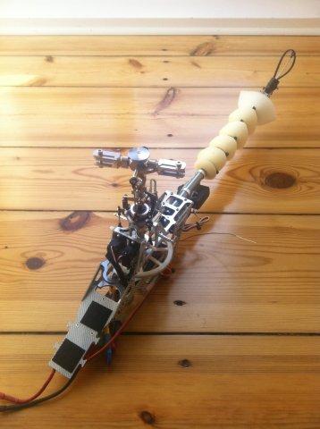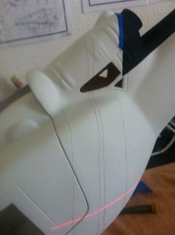 Also habe ich mich im Netz auf die Suche gemacht und bin auch fündig geworden (Keilriemen+Keilriemenscheiben+Zahnriemen : KeilriemenExpress). Die benötigte Länge hatte ich vorher per Bindfaden ausgemessen. Leider ist die Heckhöherlegung die beim Rumpf beiliegt nur bedingt zu gebrauchen. Ich hatte mich dafür entschieden, die beiligenden Plastikrollen in der Umlenkung durch Alu-Rollen zu ersetzen. Das Ergebnis sah dann so aus: