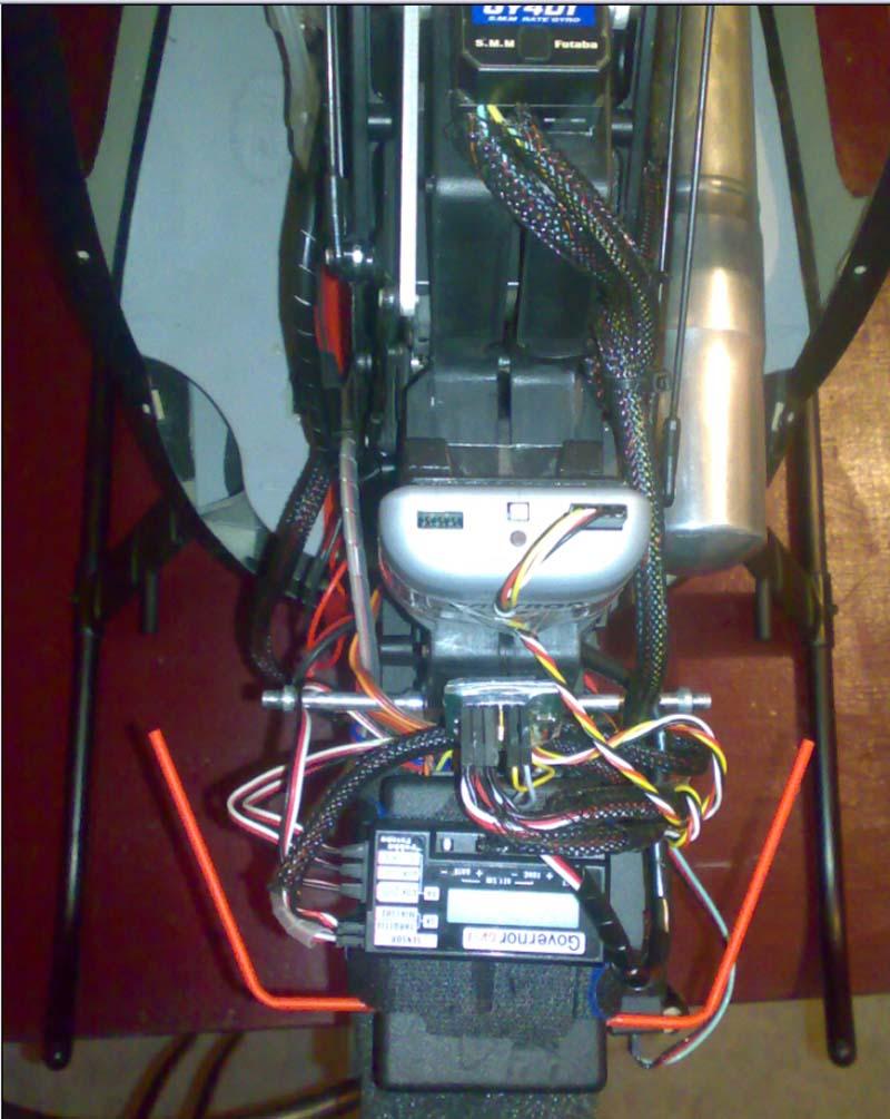 Man kann sie auch nach außen führen und dort parallel zum Rumpf verlegen (beim Rumpf hinten mittig raus und dann das Heckrohr entlang). Entweder auf den Rumpf mit Klebestreifen kleben (fände ich nicht soooo prickelnd, auch von der Empfangslage her) oder auf kleinen "Trägern", sodass sie 5mm vom Rumpf entfernt verspannt wird.